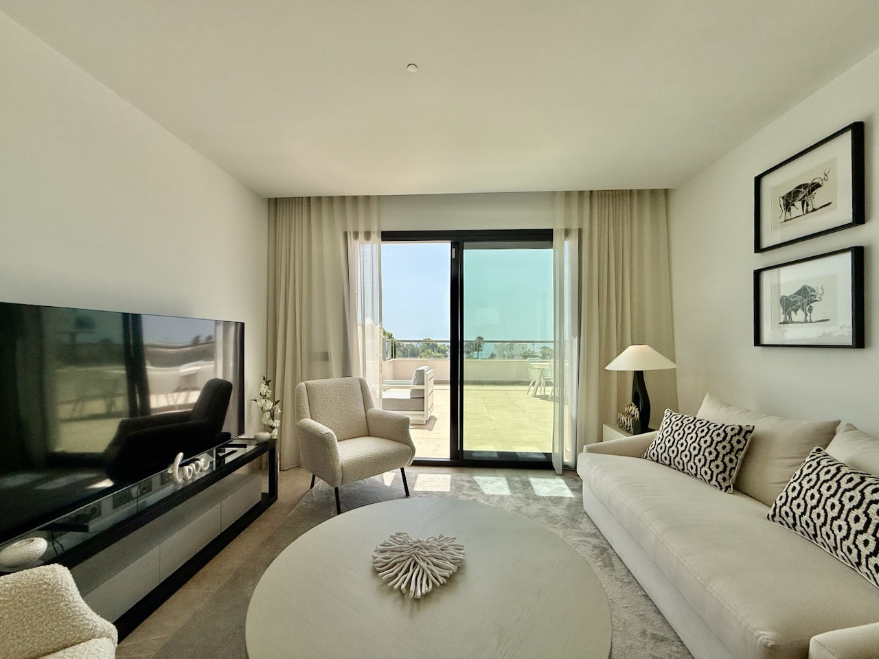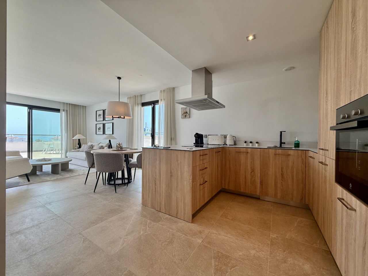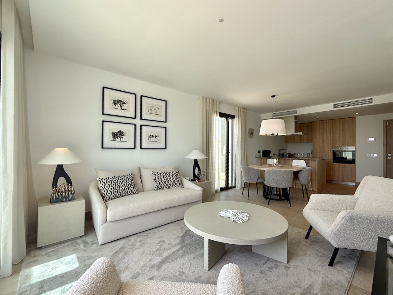 El moderno salón de planta abierta se conecta con una cocina totalmente equipada y un comedor. La suite principal incluye baño en suite y acceso directo a la terraza. Además, dispone de dos dormitorios adicionales y un segundo baño, perfectos para familia o invitados.