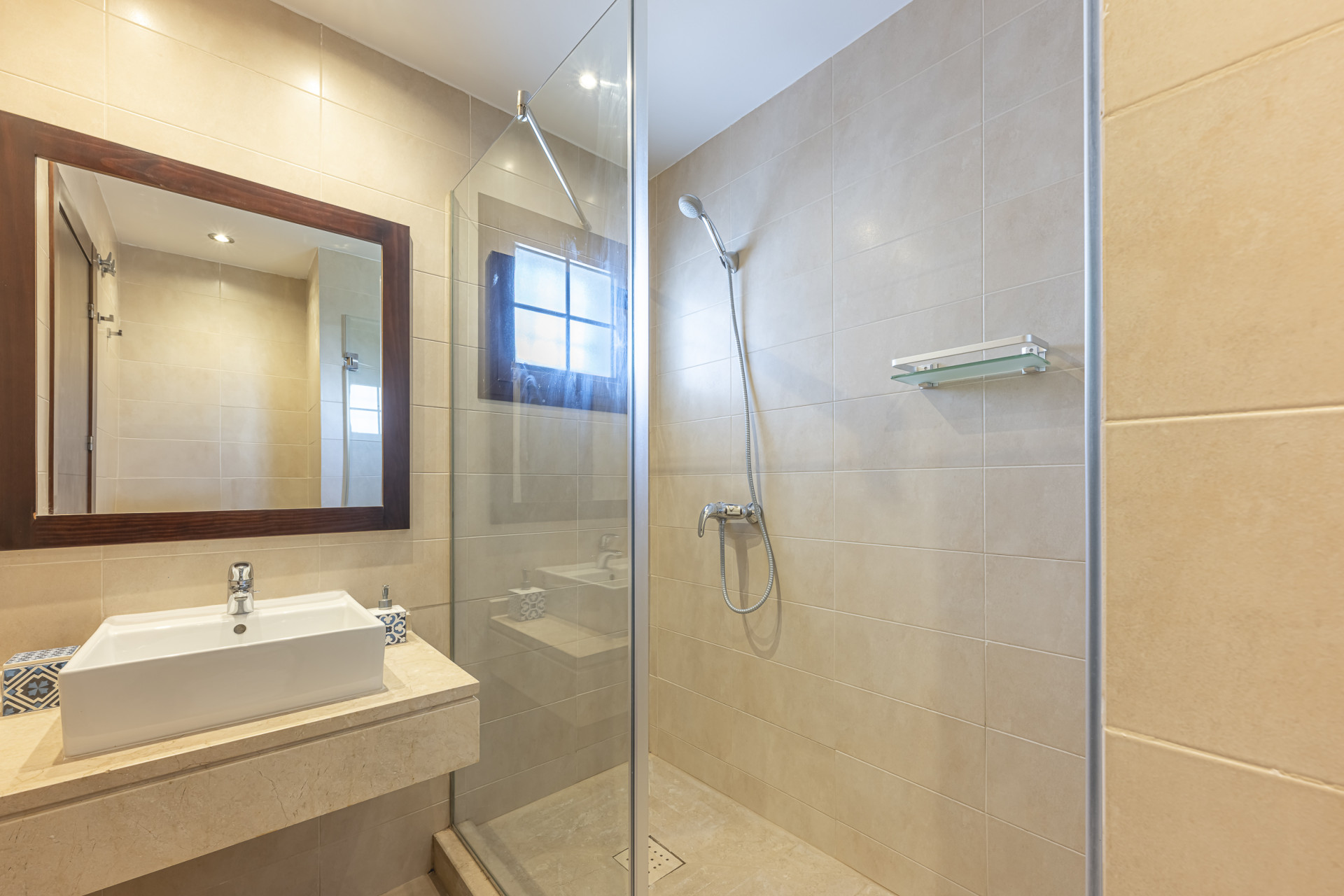 Primera planta: vestíbulo de entrada; cocina totalmente equipada con acceso a una terraza de servicio; aseo de invitados; despensa; amplio salón-comedor con acceso al porche cubierto; dormitorio de invitados (Dormitorio 1) con baño en suite y acceso a una terraza exterior.