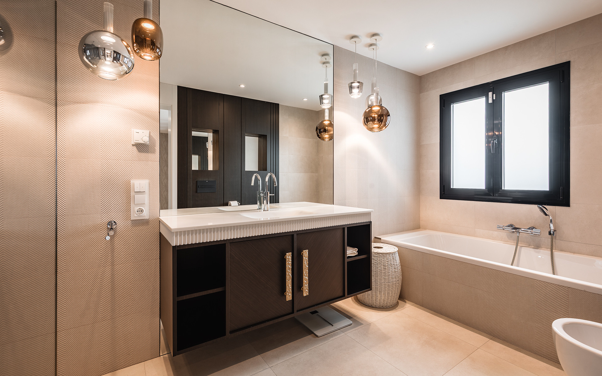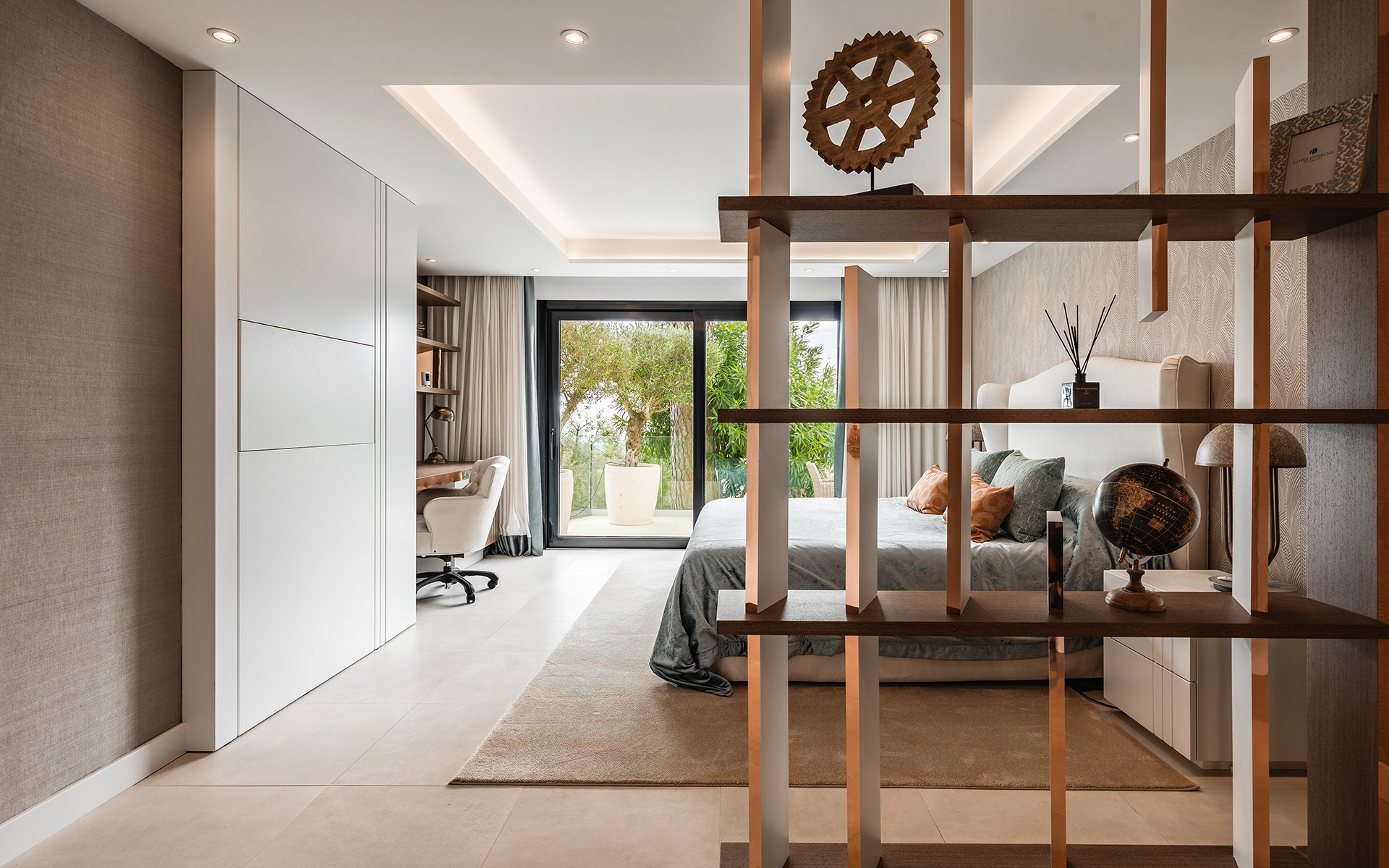 La planta superior está dedicada a la suite principal, que ofrece un dormitorio luminoso, un baño con bañera y ducha, vestidor y una terraza privada con vistas espectaculares.