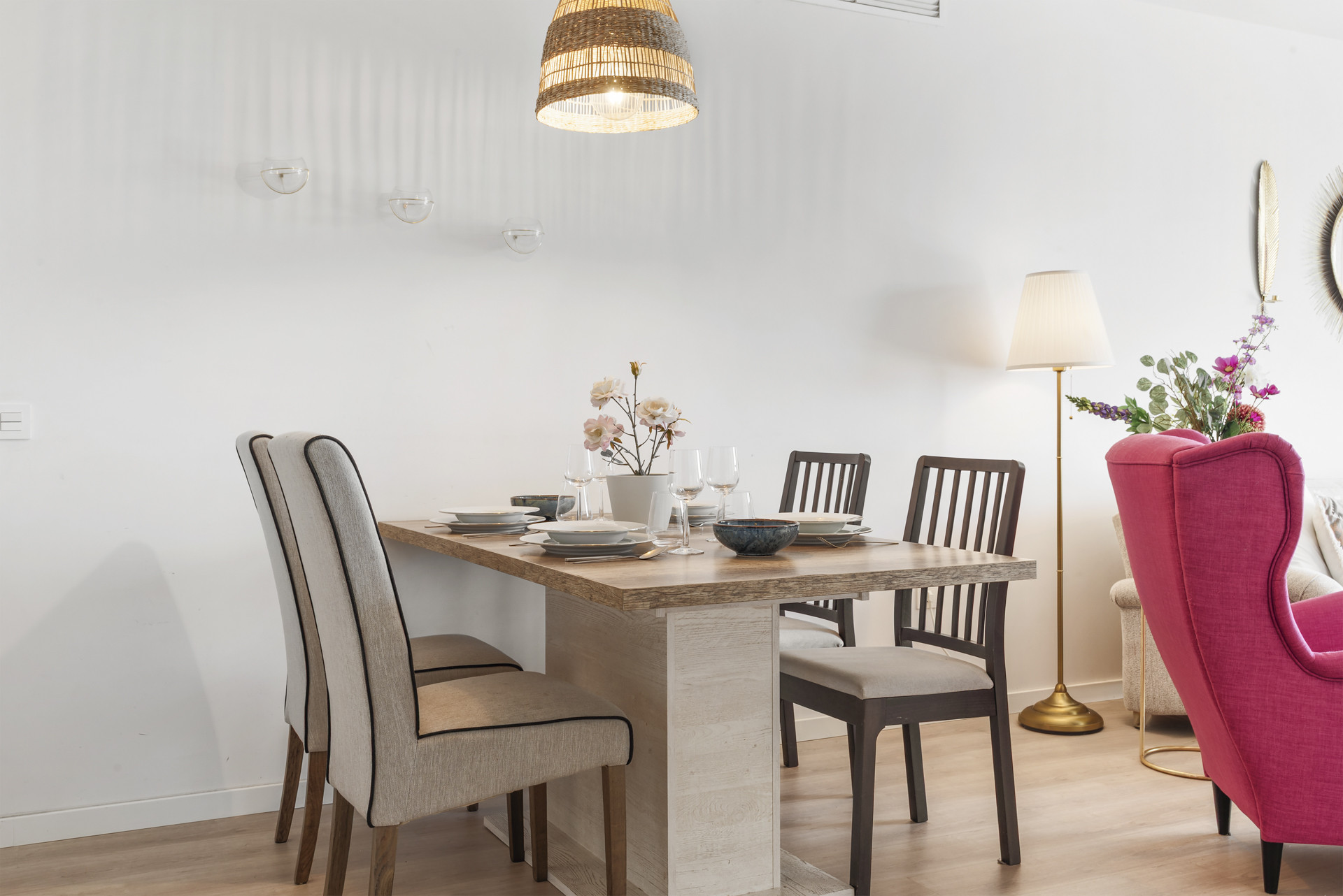 The apartment is equipped with everything needed for comfortable living, including a fully fitted kitchen with a washing machine, high-speed WiFi and air conditioning with both heating and cooling functions. All three bedrooms are tastefully furnished, providing a calm and welcoming environment, while both bathrooms feature a modern and practical design. Elevator access ensures easy movement within the building, and the property also includes a private garage space for secure and convenient parking.