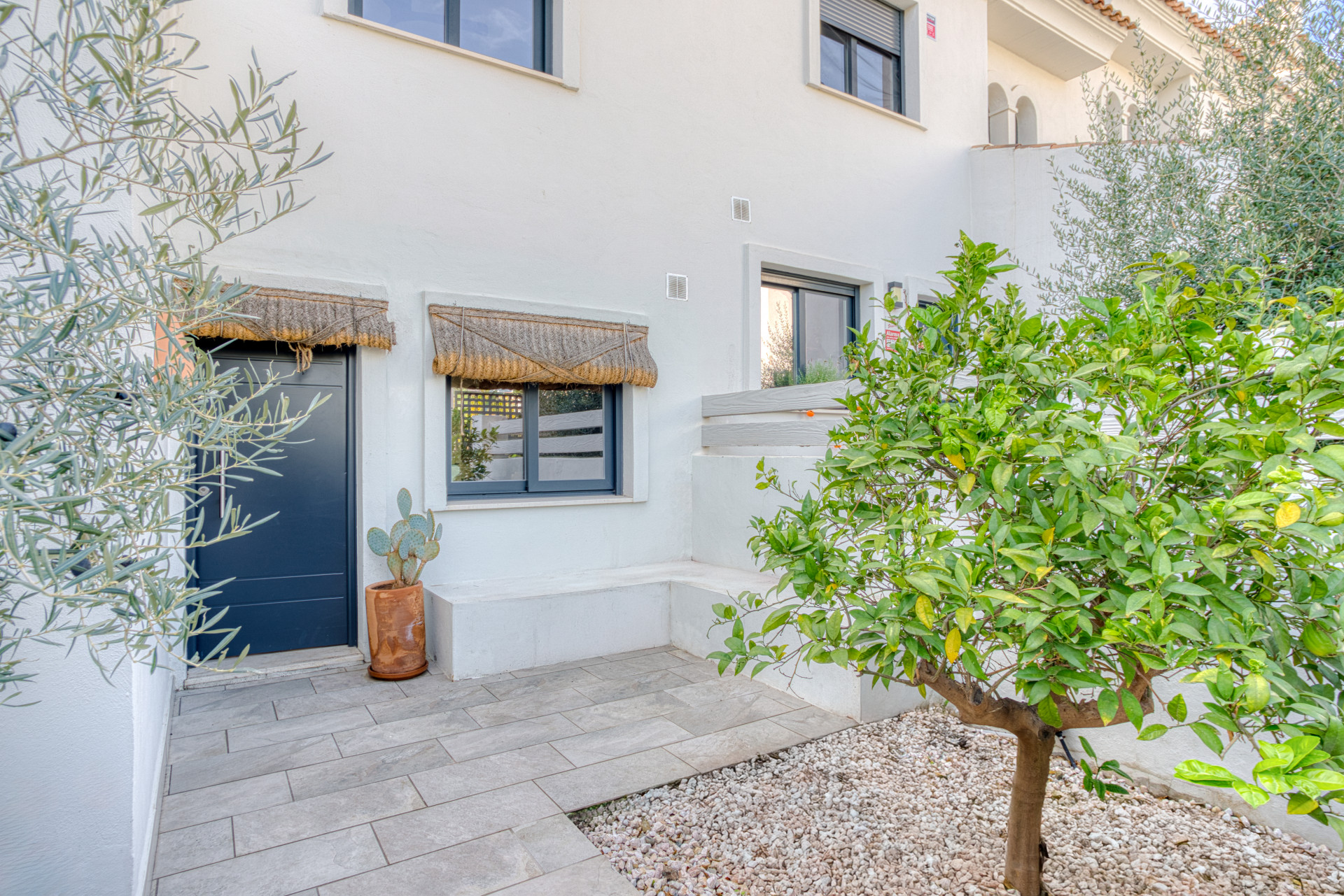 Elegante casa adosada de tres dormitorios situada en la urbanización cerrada de Agra Residencial, un encantador complejo de estilo mediterráneo de 47 amplias casas situadas junto al Campanario Golf & Country Club, en el corazón del prestigioso triángulo dorado de Estepona. Listo para entrar, esta propiedad muestra interiores luminosos y abiertos con acabados de calidad, incluyendo suelos de cerámica, armarios empotrados, baños modernos con pantallas de ducha de vidrio, y una cocina totalmente amueblada. Diseñado para vivir cómodamente, cuenta con amplias terrazas, un solárium privado y una piscina privada, perfecta para disfrutar del estilo de vida de la Costa del Sol. Destacan además aire acondicionado frío y caliente, dos plazas de aparcamiento subterráneo y acceso a hermosos jardines comunitarios y una piscina dentro de esta comunidad segura y cerrada.