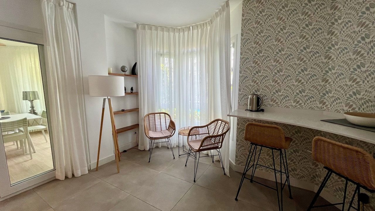 Este es un apartamento en planta baja disponible para alquilar en Los Naranjos de Marbella, Marbella. Tiene tres dormitorios y dos baños. El apartamento se enfrenta a la dirección sur/este, lo que significa que tiene mucha luz solar.