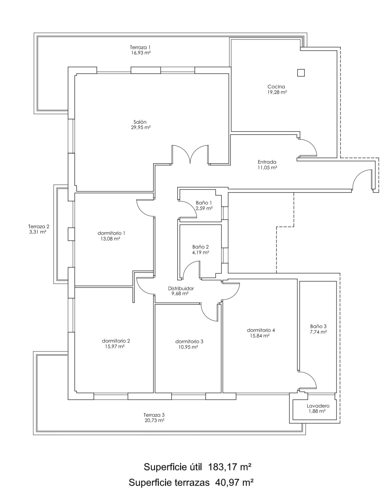 La propiedad cuenta con aproximadamente 175 m² construidos, incluyendo amplias zonas de estar y terrazas privadas. Algunas partes del apartamento han sido recientemente renovadas.
