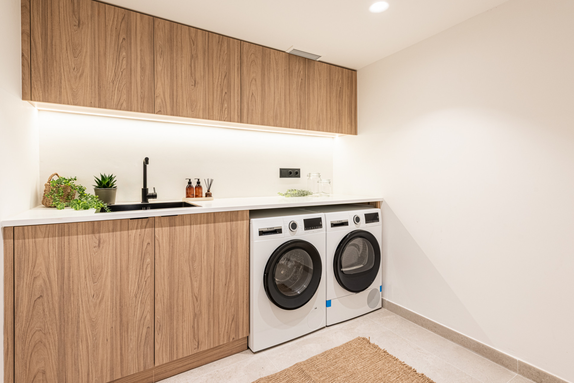 En el nivel inferior, el sótano se convierte en un centro de entretenimiento con su propio bar, ideal para reuniones, noches de cine o un segundo espacio habitable para adolescentes. Esta planta también incluye un lavadero y acceso directo al garaje.
