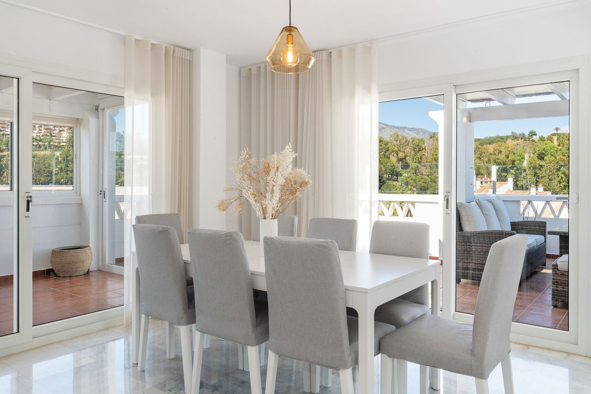 One of the standout features of this penthouse is the expansive terrace that provides breathtaking panoramic views of the surrounding area. Whether it's the lush greenery of Nueva Andalucia, the distant Mediterranean Sea, or the picturesque mountain ranges, you'll be able to enjoy these vistas from the comfort of your own home. This terrace is perfect for entertaining guests, dining al fresco, or simply basking in the beauty of your surroundings.