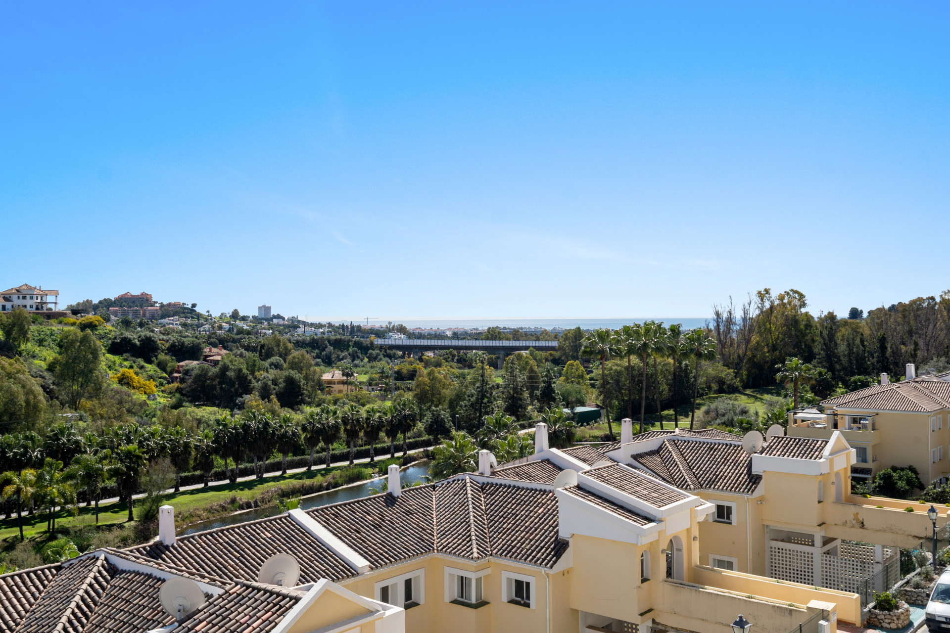 This elegant three-bedroom, three-bathroom residence with an additional guest toilet offers 174 m² of beautifully redesigned living space, combining modern comfort with refined style. The bright open-plan living and dining area flows seamlessly onto a spacious terrace, where stunning views of the Mediterranean Sea, surrounding mountains, and La Quinta golf course create an exceptional indoor-outdoor lifestyle.