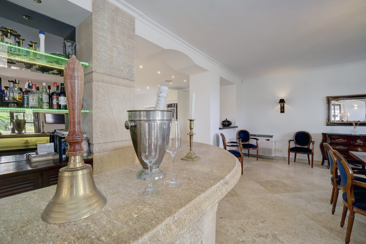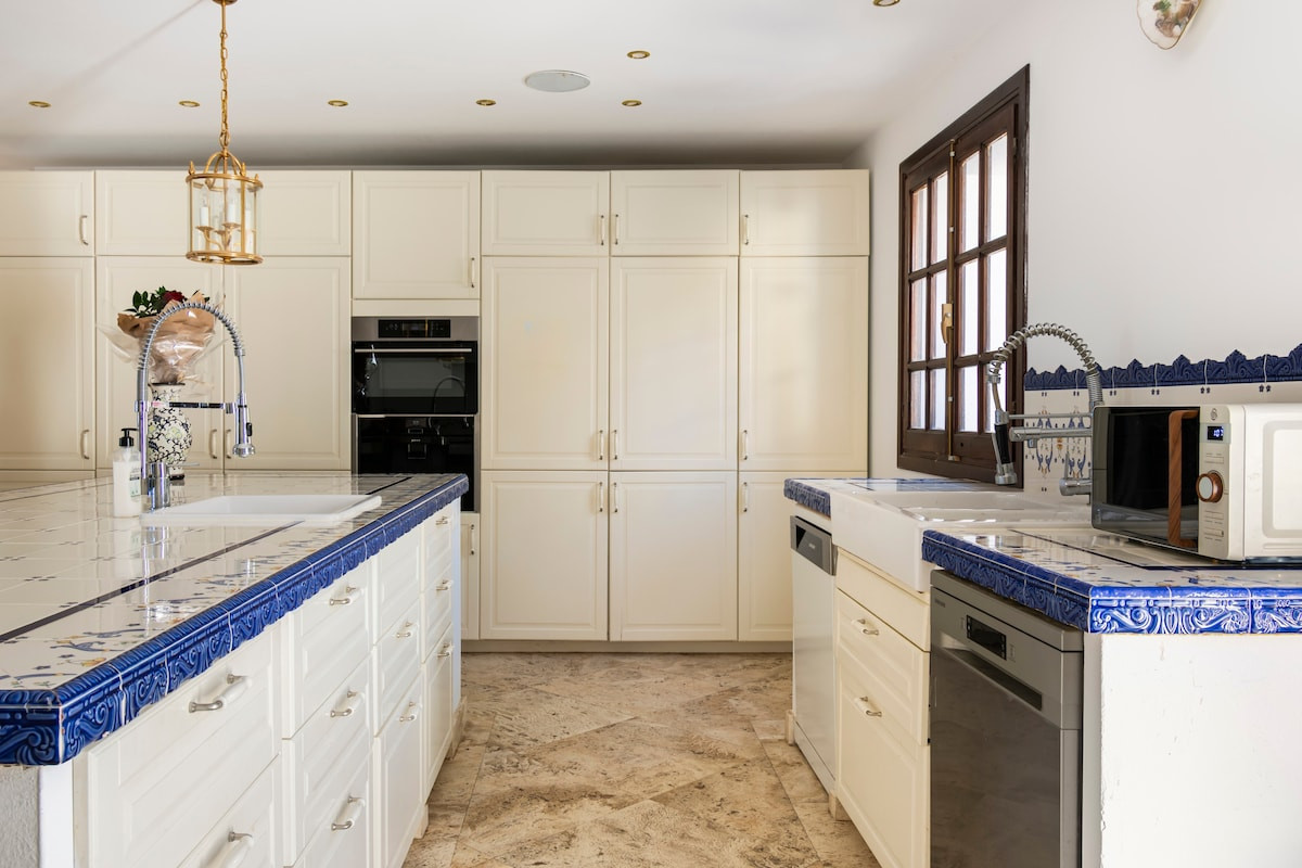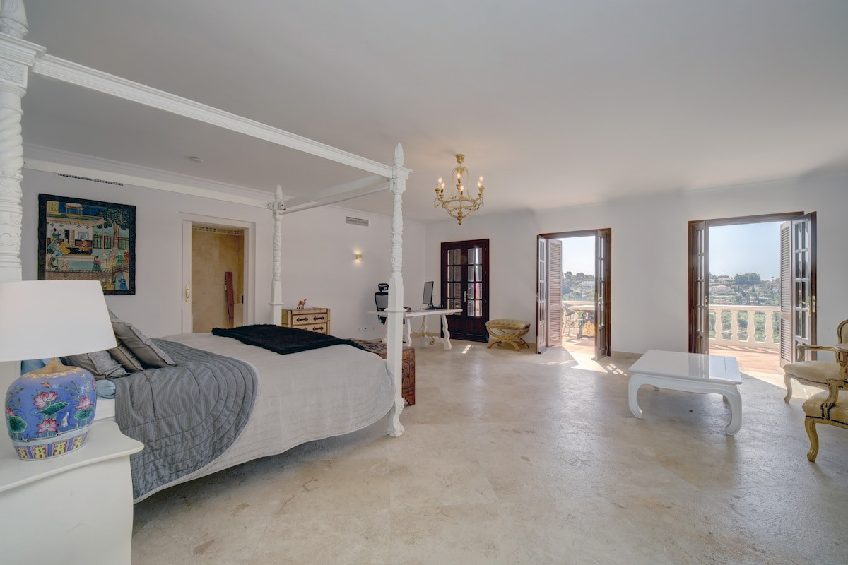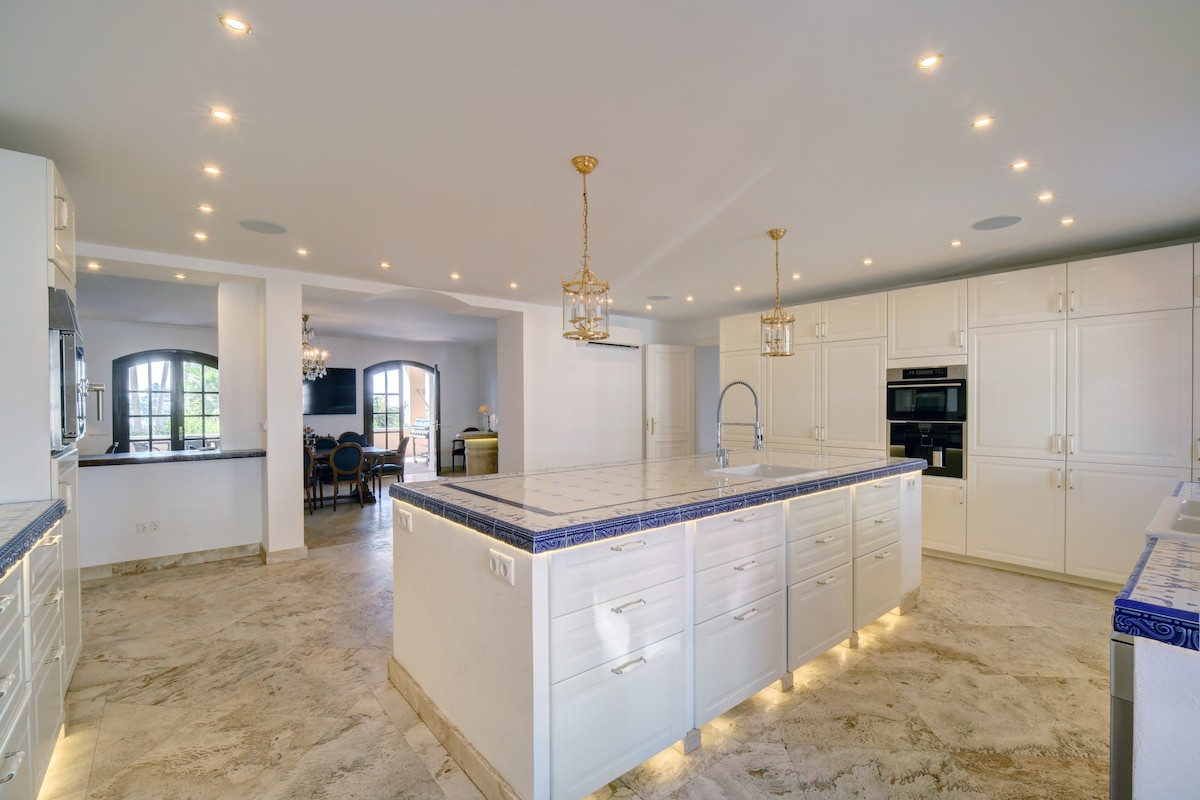 The mansion stands in a privileged location, surrounded by mountain landscapes and golf course views, creating an atmosphere of tranquility and exclusivity. The 120 m² terrace is perfect for enjoying warm Mediterranean evenings, while the private garden and heated pool offer a relaxing oasis. Capacity for five vehicles ensures comfort and security for residents and their guests.