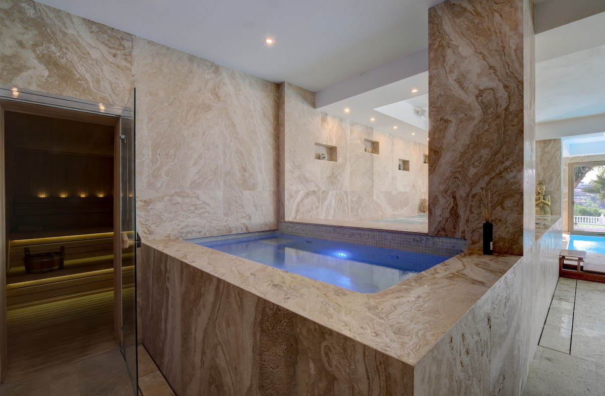 A spa with a Jacuzzi, sauna, and massage room for moments of absolute relaxation.