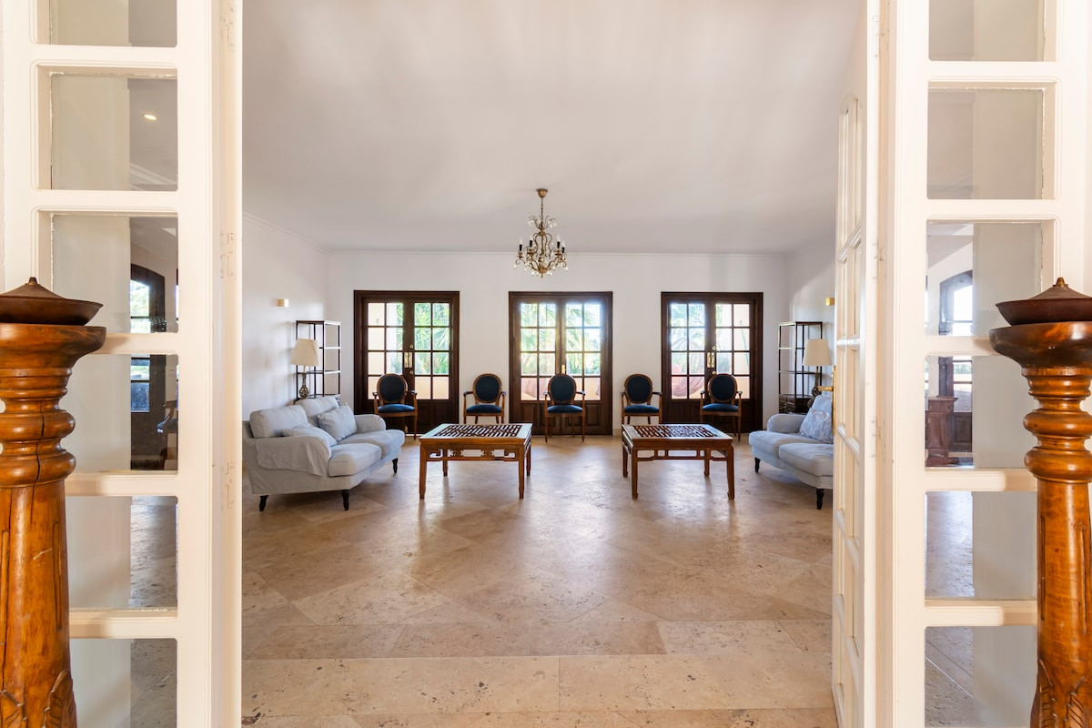 The mansion's interior is an example of Asian design, with marble floors, high ceilings, and large, bright spaces. The 9 bedrooms, including 6 en-suite bathrooms and 11 toilets, are laid out to offer privacy and comfort. Social areas, such as the main living room and dining room, are designed for entertaining, while the fully equipped kitchen with high-end appliances meets the most demanding needs.
