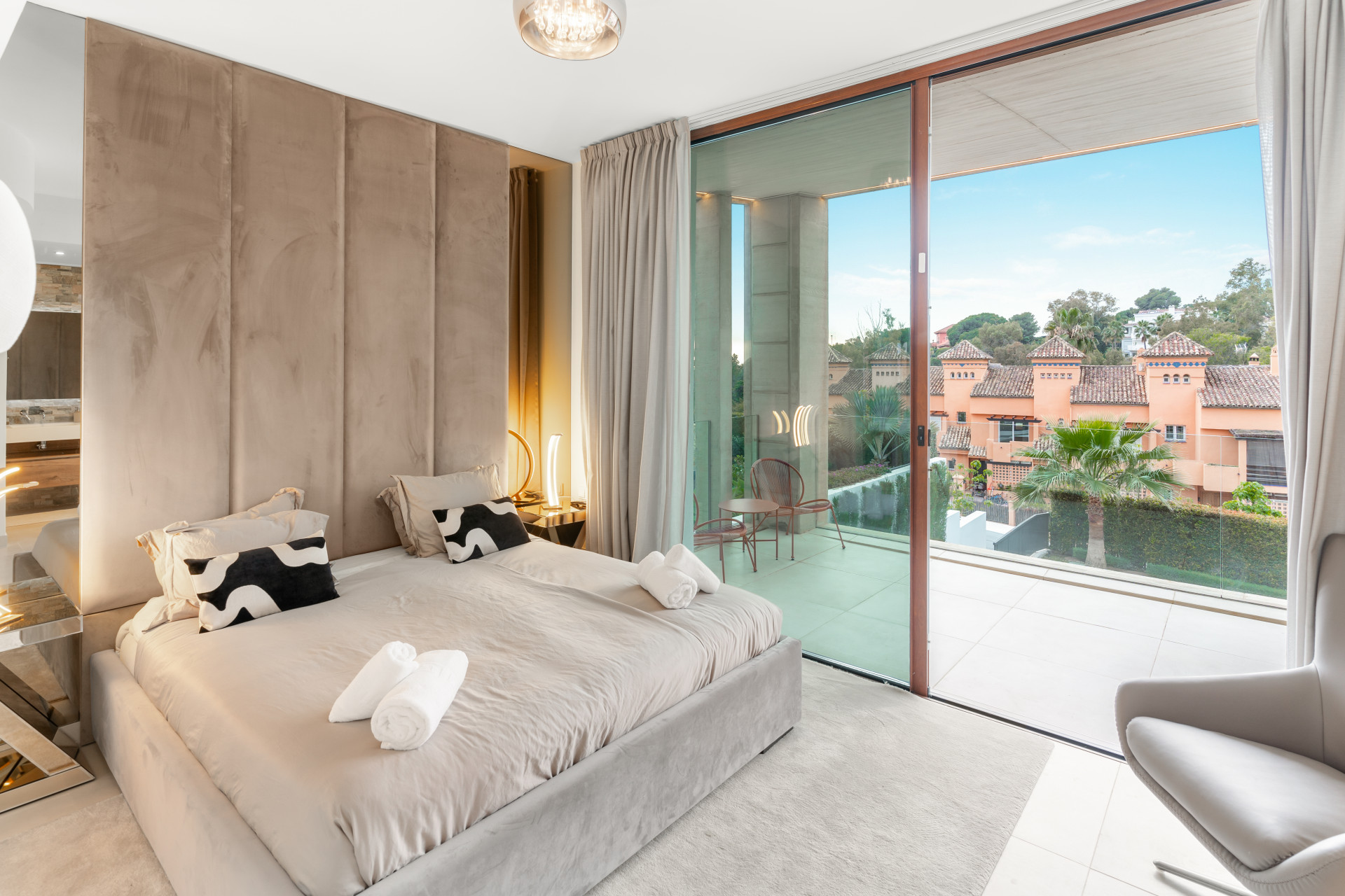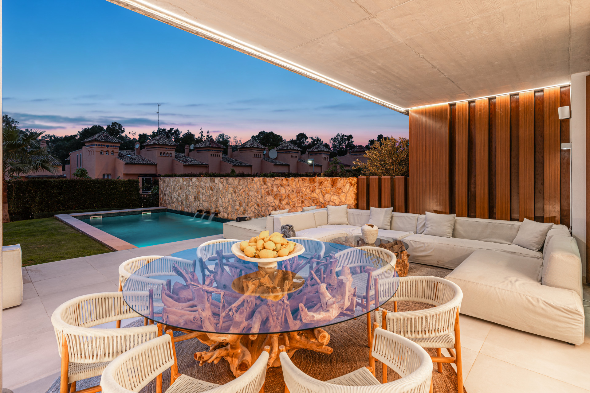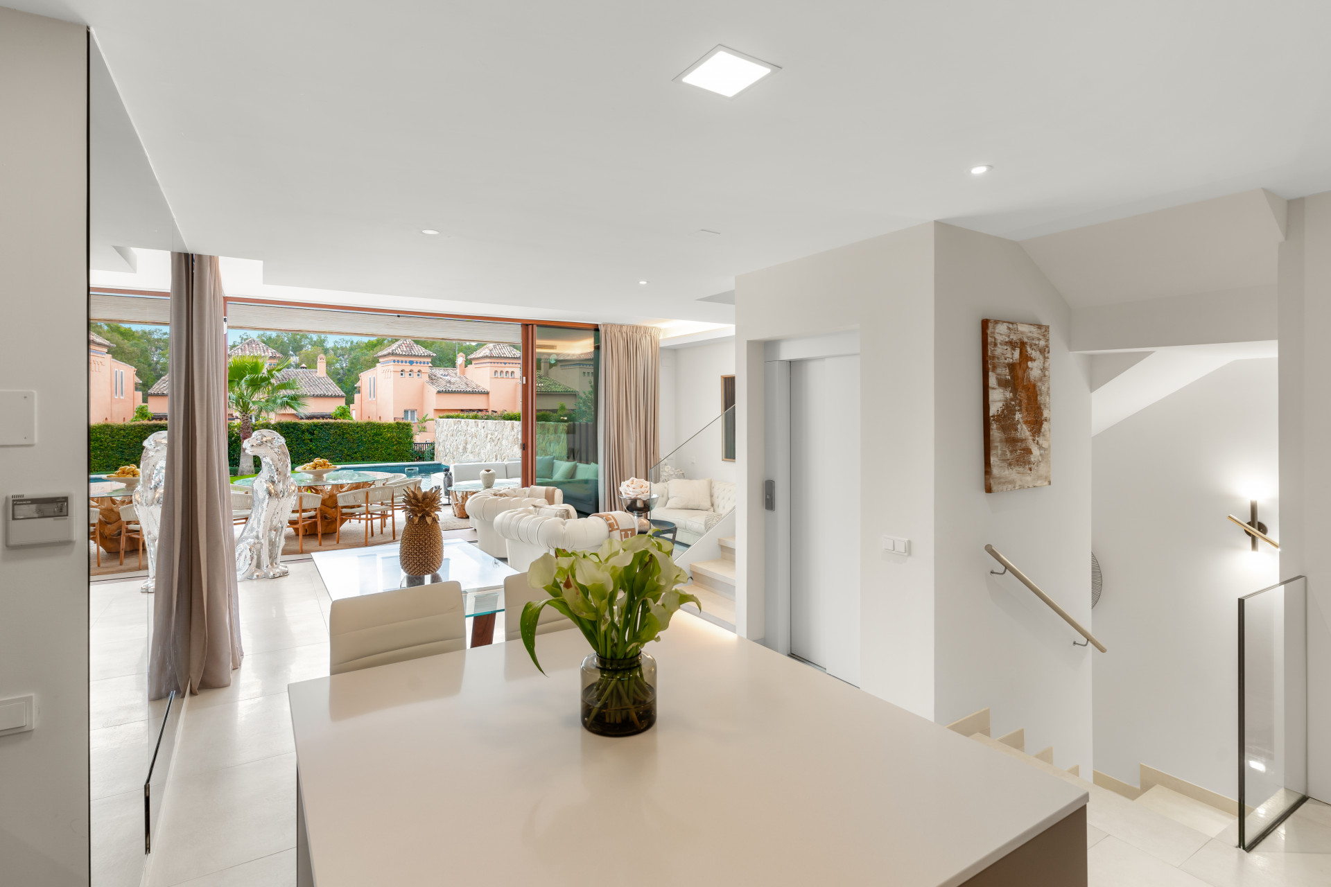 Located just 200 meters from the iconic Puente Romano Beach Resort & Spa and minutes from the legendary Marbella Club Hotel, this stunning semi-detached villa offers an unparalleled five-star luxury experience in one of Marbella’s most sought-after locations Surrounded by world-renowned designer boutiques such as Chanel and Louis Vuitton, as well as the newly opened Forum, the Golden Mile’s premier dining and shopping destination, this home is perfect for those who appreciate high-end fashion, fine dining, and the ultimate Mediterranean lifestyle