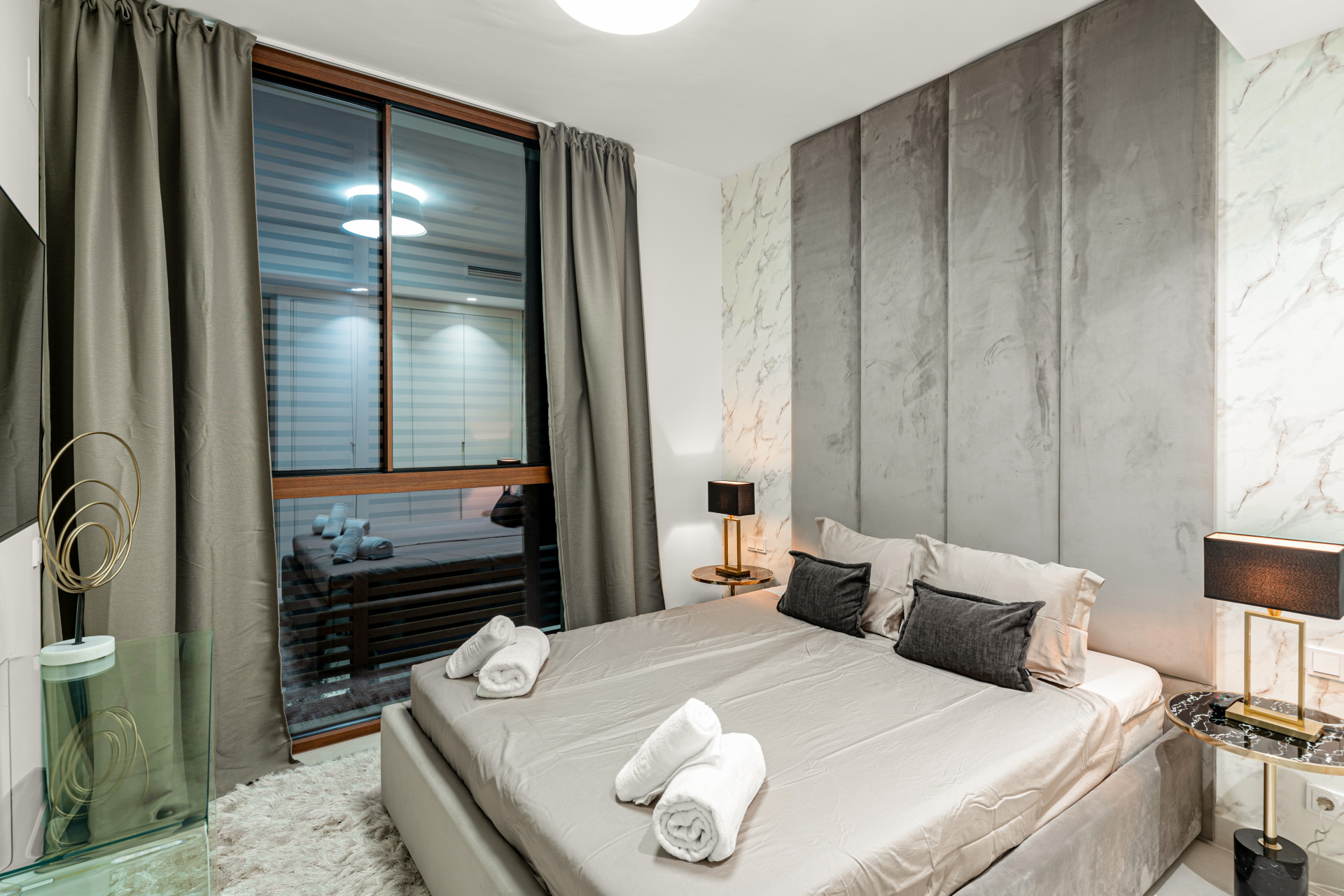 The 50 sqm rooftop terrace is the crown jewel of this home, featuring a private Jacuzzi with panoramic sea and mountain views and a stylish sitting area, ideal for sunset relaxation or intimate gatherings