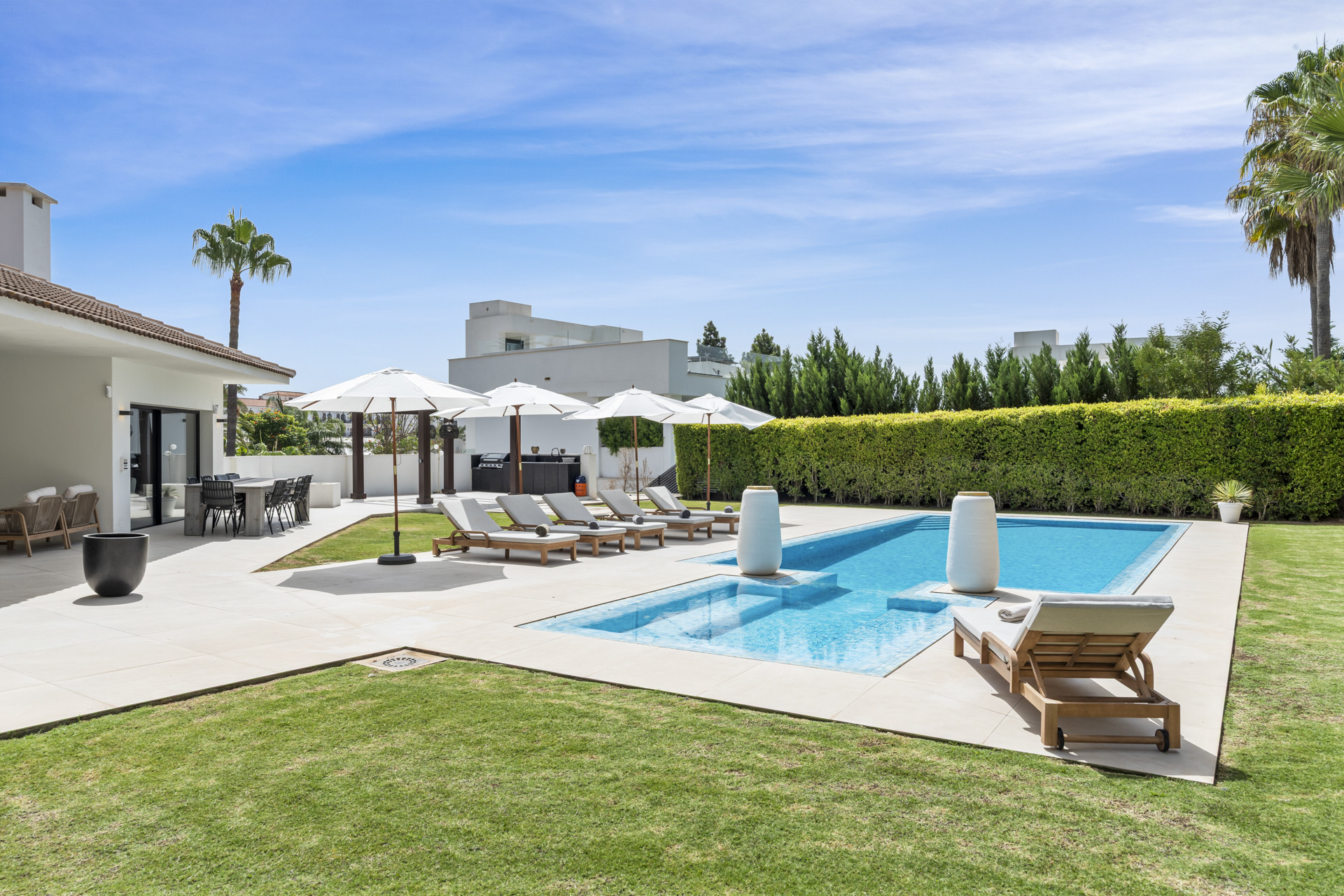 This outstanding luxury villa in Nueva Andalucía embodies the perfect blend of sophistication, comfort, and location. Within walking distance to the beach, the vibrant heart of Puerto Banús, the glamorous Marbella Casino, and the iconic Hard Rock Hotel, it offers unmatched access to Marbella’s most exclusive lifestyle. From designer boutiques and world-class dining to lively beach clubs and prestigious international schools, everything is just moments away.