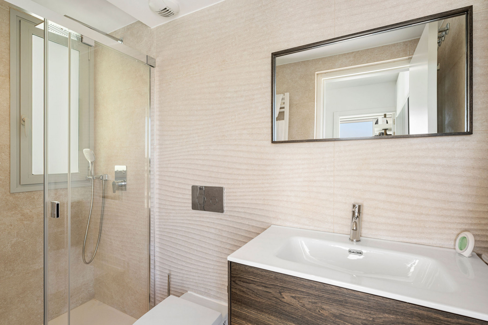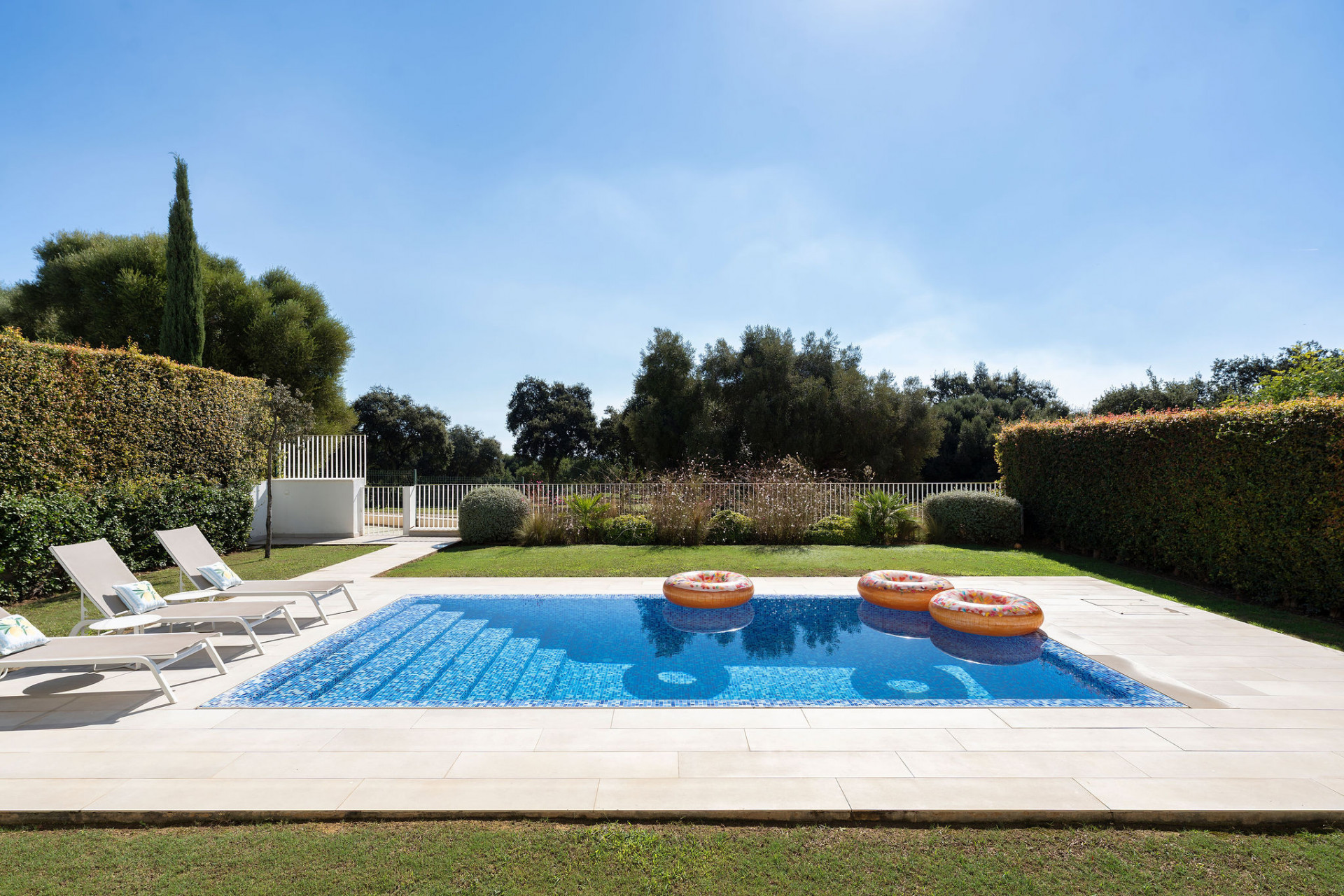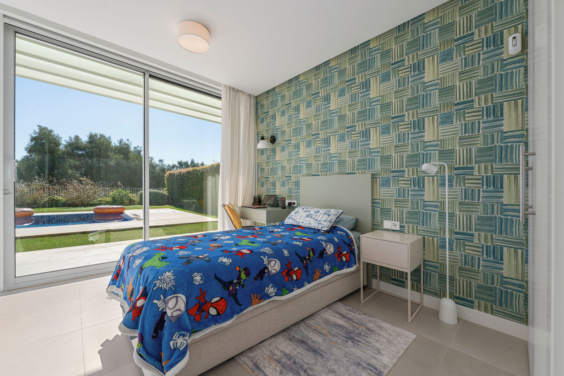 On the garden level, four spacious bedrooms open directly to the pool and landscaped grounds, creating a private retreat for family and guests. Elegant bathrooms with walk-in showers and refined finishes enhance the sense of comfort and style, while the connection to the poolside terrace makes this floor ideal for relaxed, resort-like living.